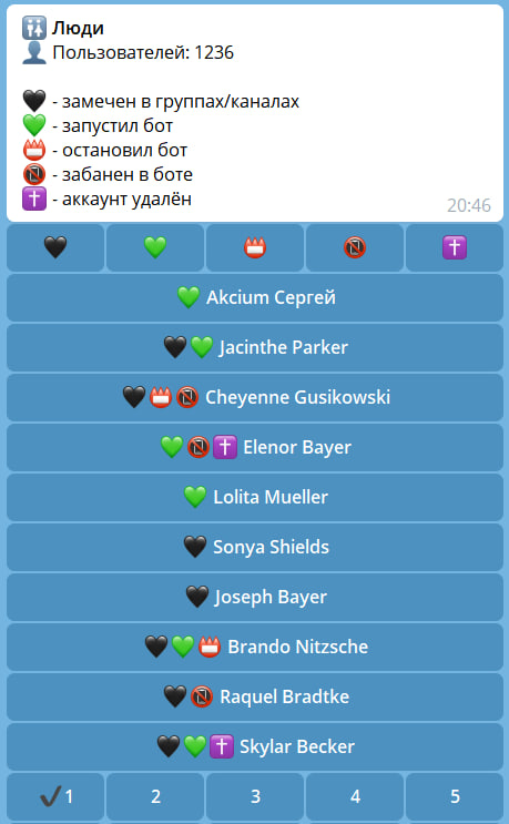 В разделе пользователи находятся все пользователи бота, а так же те, кого хотя бы раз видел бот.