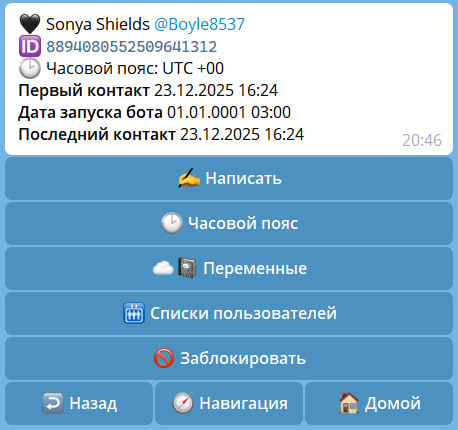 | ✍️ Написать | Отправка сообщения пользователю напрямую |