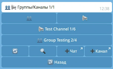 Чаты и каналы - раздел для работы с чатами и каналами, в которые был добавлен бот.