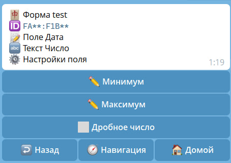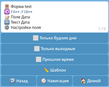 | Пропуск | Добавляет кнопку "пропустить поле", которая позволяет пропустить поле, не заполняя. |